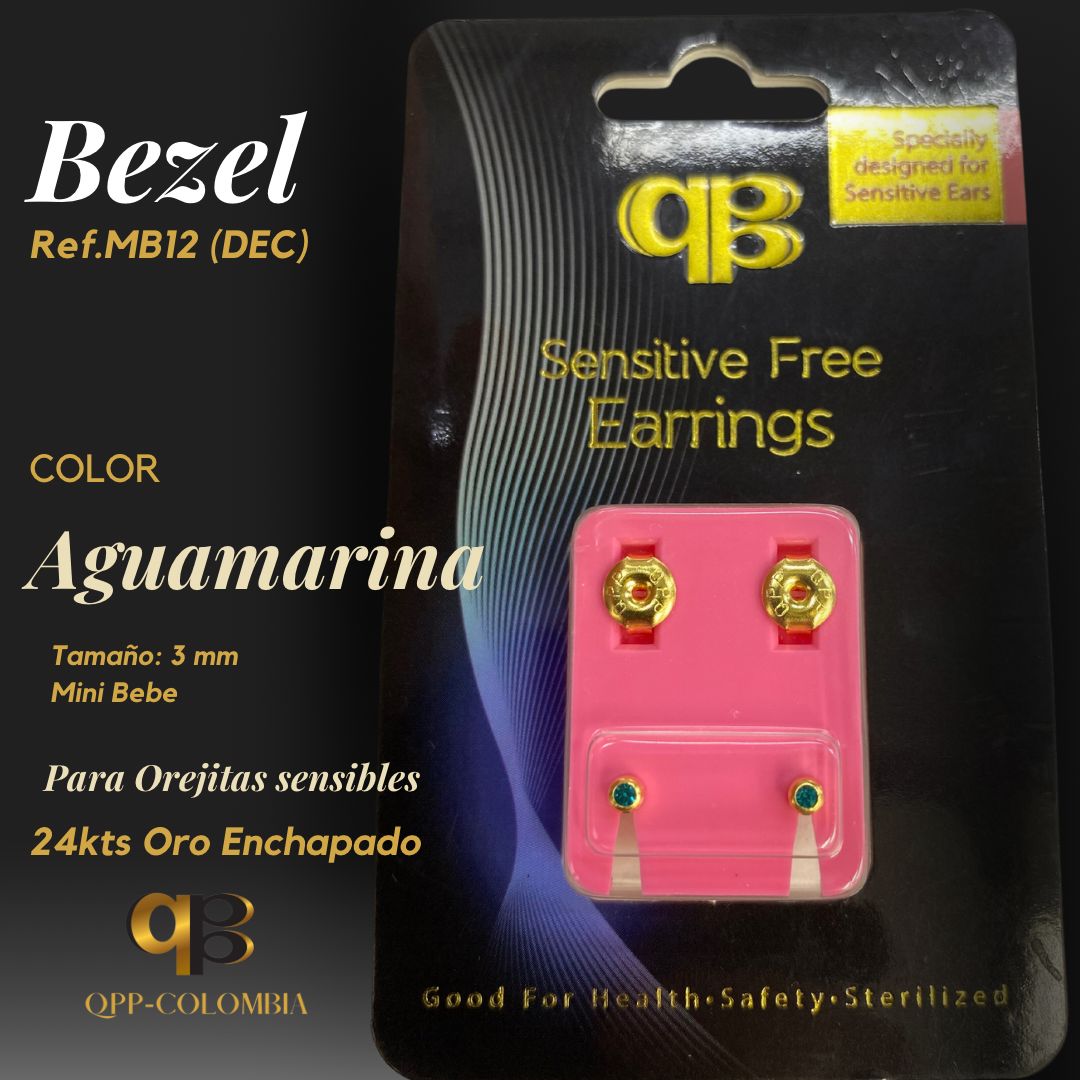 Earring Bezel Aguamarina Ref: MB12 (DEC) 3mm Mini Bebe 24kts Oro Enchapado