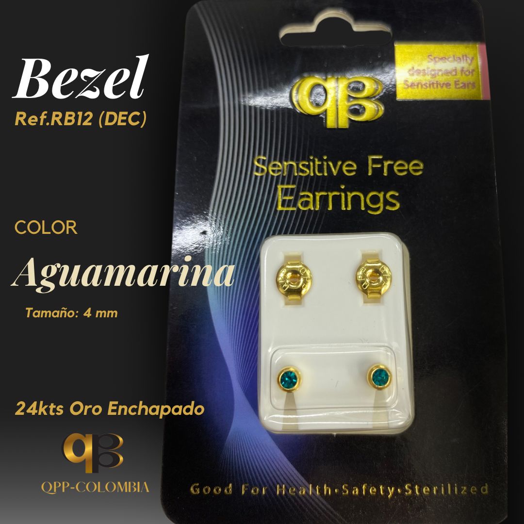 Earring Bezel Aguamarina Ref: RB12 (DEC) 4mm 24kts Oro Enchapado